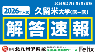 お知らせ【2026入試】久留米大(医-医)学校推薦型選抜【解答例】 2025年11月15日(土)実施久留米大学医学部医学科学校推薦型選抜(一般)A日程・久留米大学特別枠・福岡県特別枠の解答速報を公開します! 英語 数学 2025.11.15お知らせ